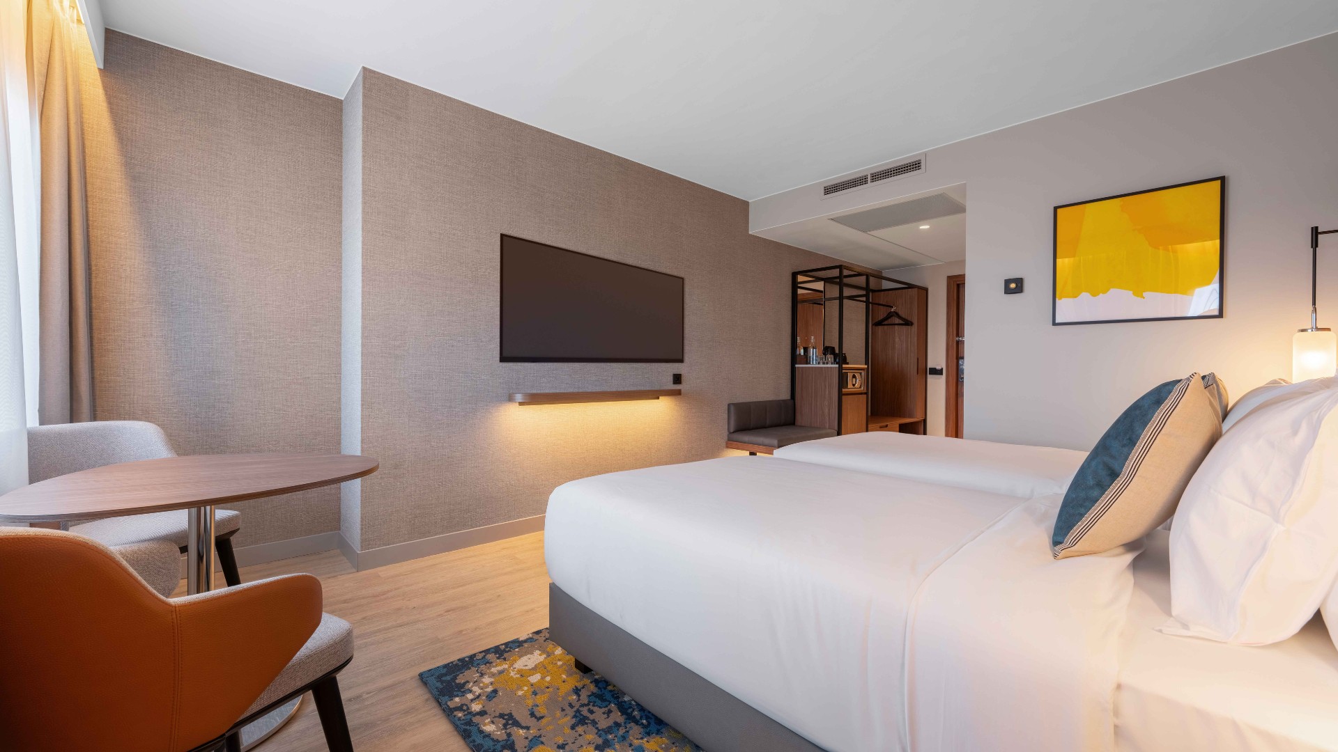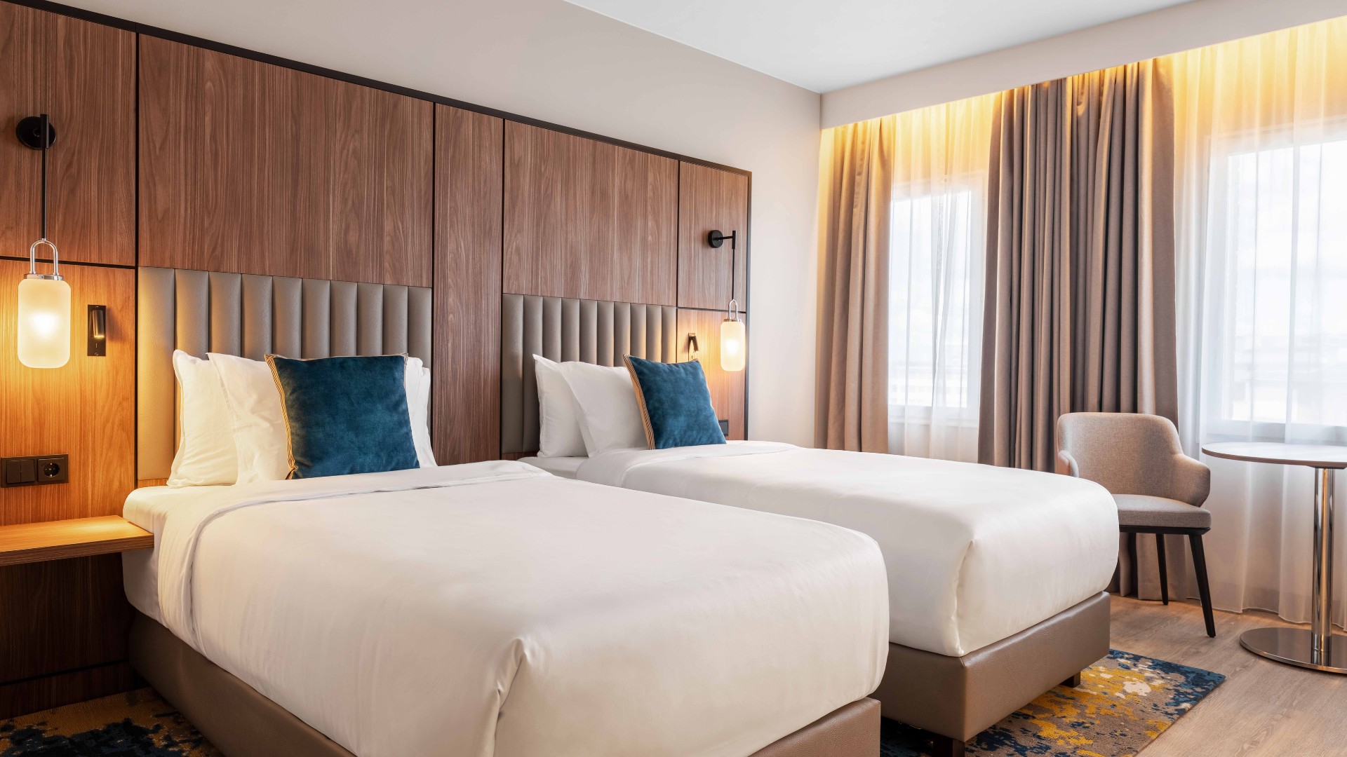 Our Standard Twin, ranging from 20-25 sqm, offer a stylish retreat with spacious, elegant furnishings. Choose from a king-size bed or two comfortable twin beds. Perfect for friends, or colleagues, these rooms seamlessly combine comfort, style, and modern amenities for a relaxing stay.